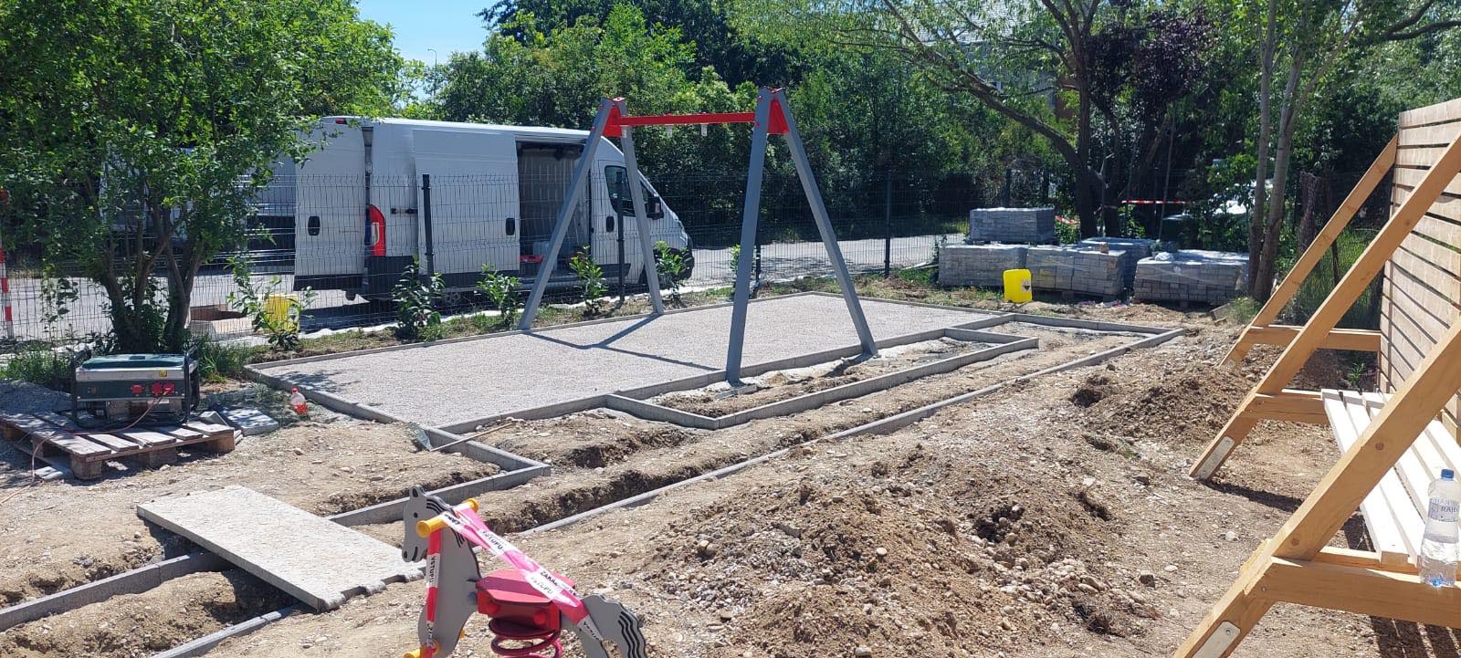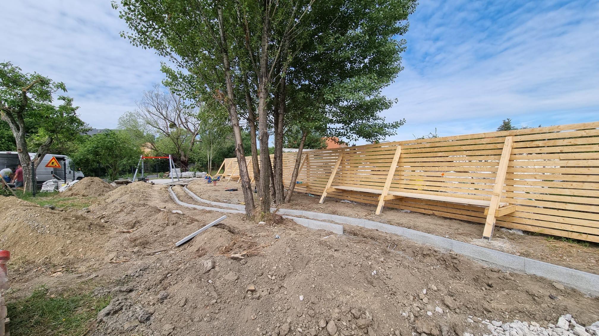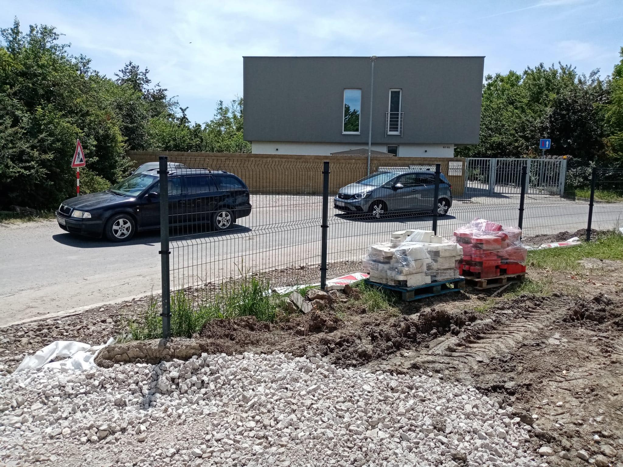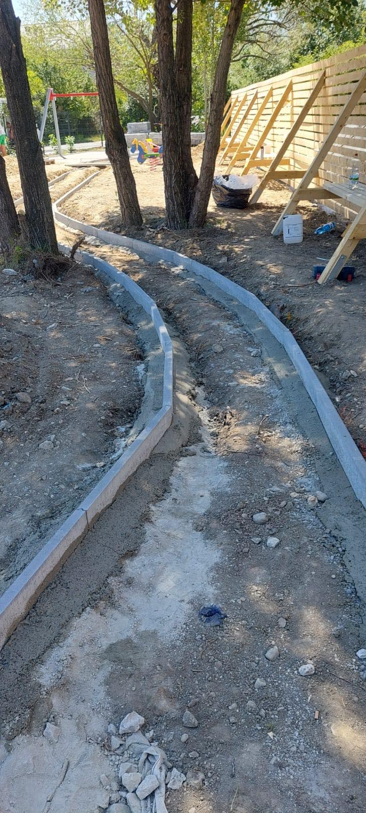 Počas piatka a soboty nám osadili obrubníky vo vnútri areálu a dokončili vstupnú časť opoenia.