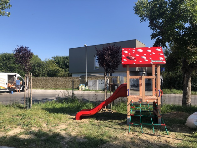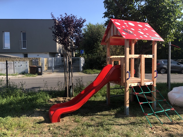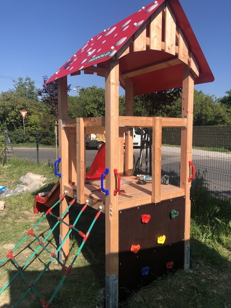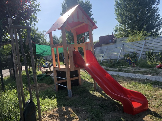 Milé rodinky, na ihrisko nám pribudla ďalšia atrakcia - domček so šmykľavkou pre menšie deti.