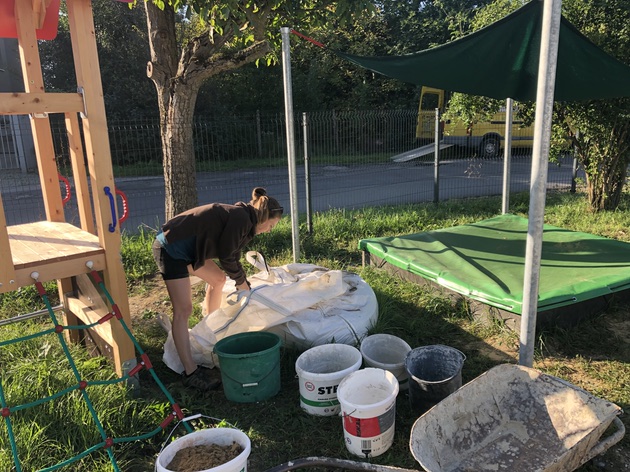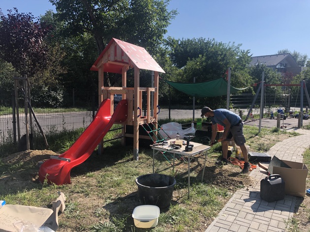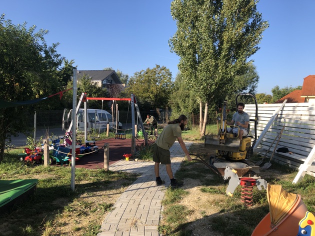 Milí rodičia, vyrovnávame povrchy ihriska a pripravujeme ich na osadenie posledného hracieho prvku - šplhacej zostavy pre väčšie deti, ktorá bude namontovaná v priebehu novembra. Okrem vyrovnávania povrchov sa nám podarilo zrealizovať aj montáž novej vodnej atrakcie - ručnej pumpy na polievanie zelene.