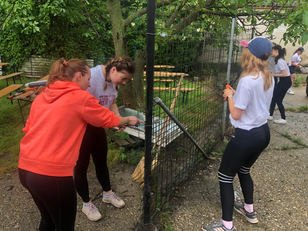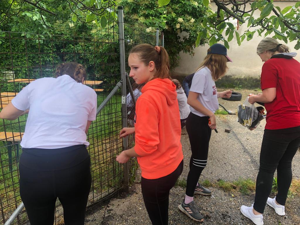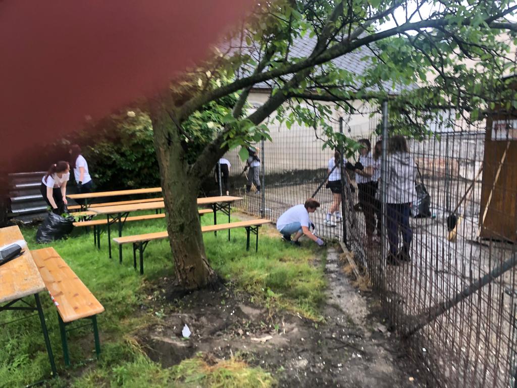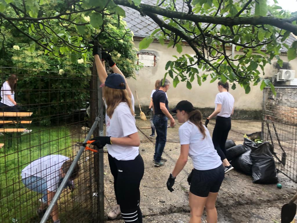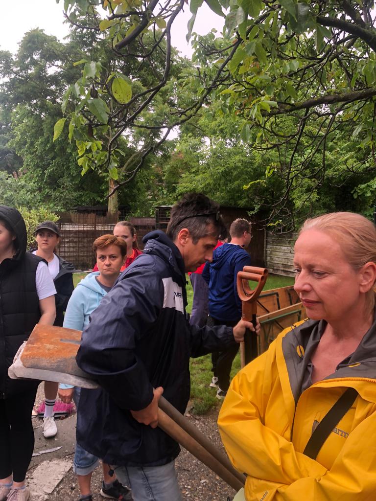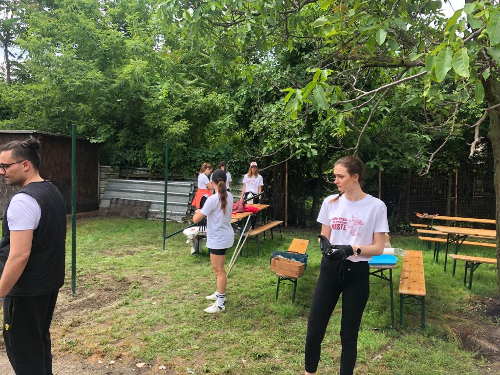 V piatok 9.6. sme spolu s firemnými dobrovoľníkmi zo spoločnosti EssenceMedia  v rámci projektu Nadácie Pontis "Naše mesto"  zrevitalizovali priestor Klubovej záhrady, ktorý postupne pretvárame na mesto, kde bude Objavovňu Geoparku. Zároveň vznikne aj ideálny priestor na organizáciu vonkajších tvorivých dielní. Aj napriek nepriaznivému počasiu sme v záhrade vytrhali burinu, vyčistili trávnik a betonovú plochu, presunuli plotové dielce, ostrihali náletové dreviny a osadili vyvýšené záhony. Vo vnútri vyvešali dobrovoľníci zrkadlá, pripevnili nábytok a umyli veľké výkladové okno.
