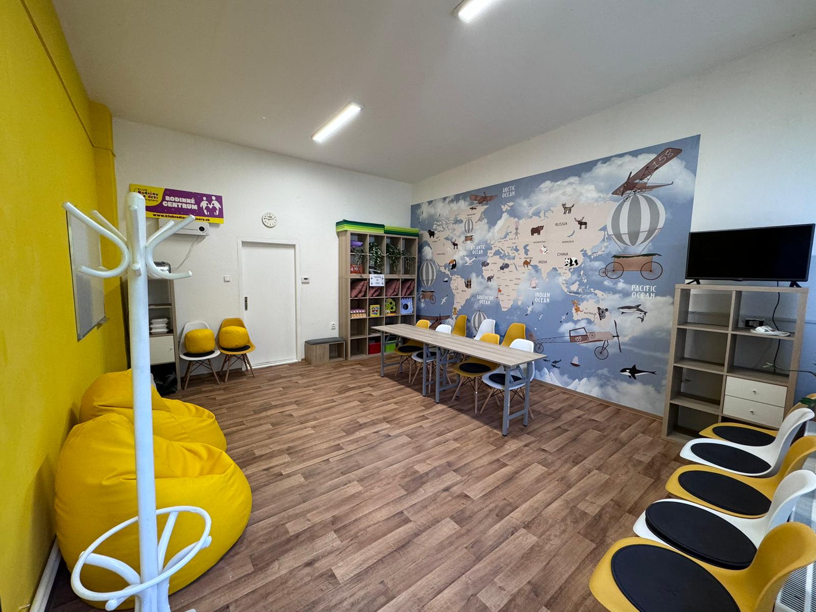 Priestory Klubovne sme vytvorili v rámci konceptu Rodinného centra v lete 2023, pričom našou prioritou bolo zabezpečenie priestorov na pravidelné konanie denných letných táborov a tvorivých dielní.